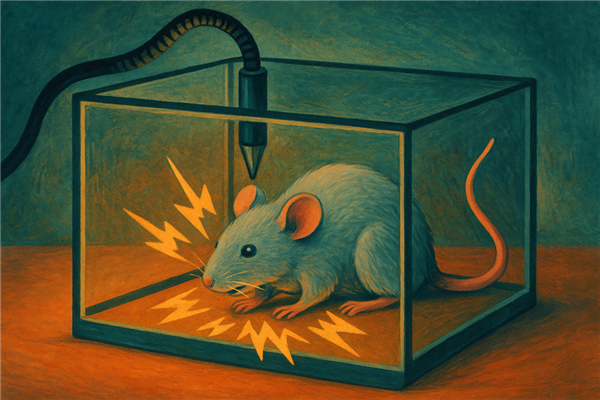 第二天,小鼠被放入一个完全不同的环境 B 中,并在这个过程中通过光刺激重新激活环境 A 的记忆神经元,同时施加电击。也就是说,小鼠的大脑此刻同时经历了“正在想起环境 A ”与“此时正在受伤”的双重输入。