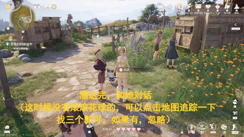 返回刚开始的地方,等到傍晚,将泪瓶和三个滚滚花球交给迪安娜(滚滚花球没有的话,点击地图追踪即可)