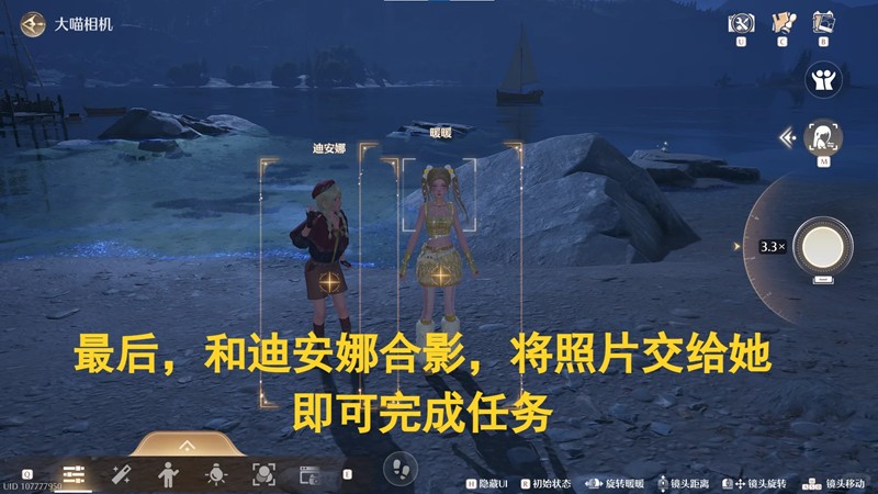在夜晚的蓝眼泪边拍照留念,将照片交给迪安娜,进入对话,即可完成任务,获得信件和首饰φ(゜▽゜*)?