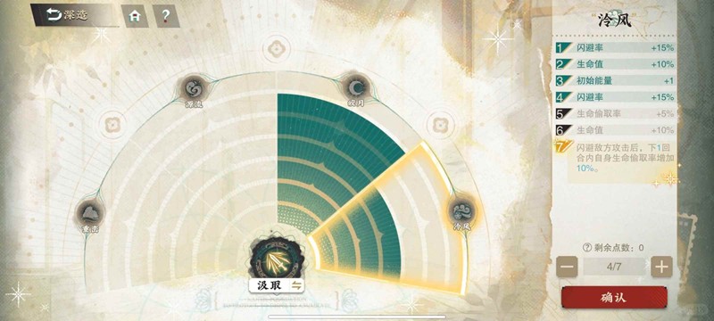 加点4泠风,6皎月。要优先点4泠风把30%闪避点满,配合大招加的30%闪避,一共有60%闪避。触发闪避同时也能回击。