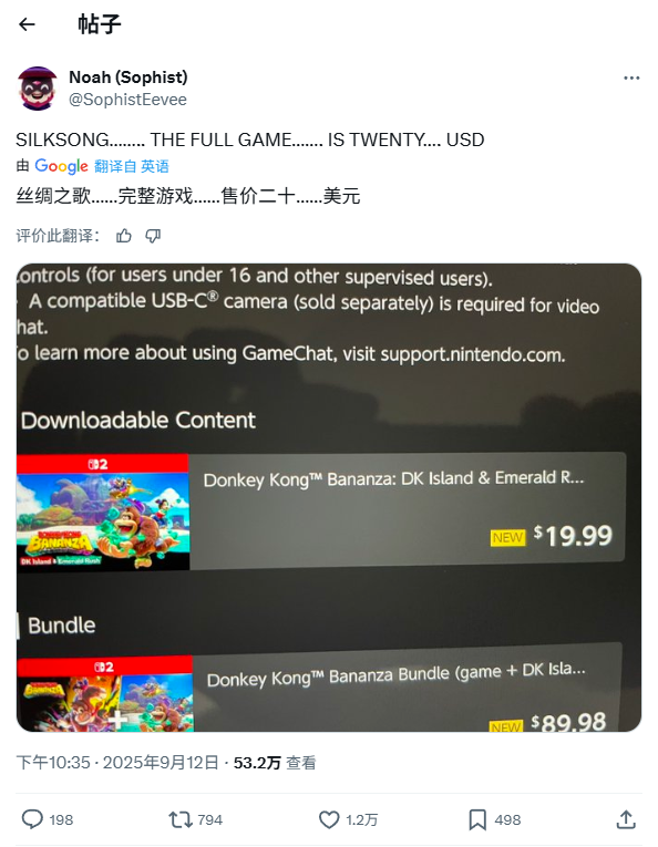 与此同时,部分声音指出,《空洞骑士:丝之歌》完整游戏的定价同为20美元,使得对比之下“DK岛”显得定价更显激进。