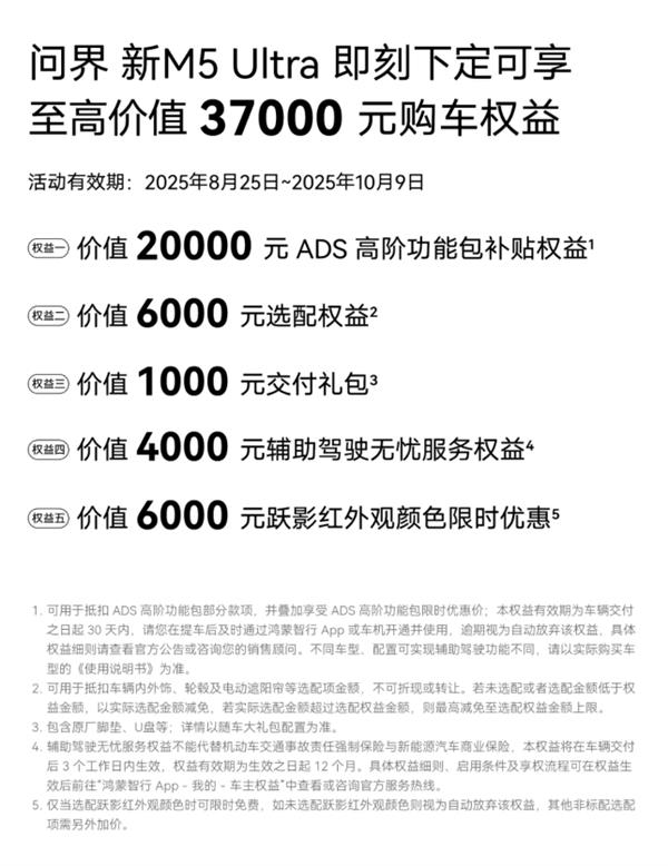 37000元购车权益+跃影红新色 问界新M5 Ultra成高性价比之选