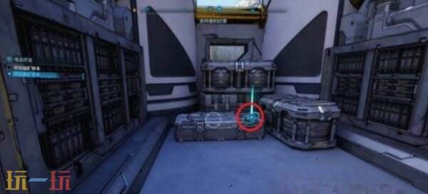 进入区域后,走到右侧两个罐子组成的设施位置。