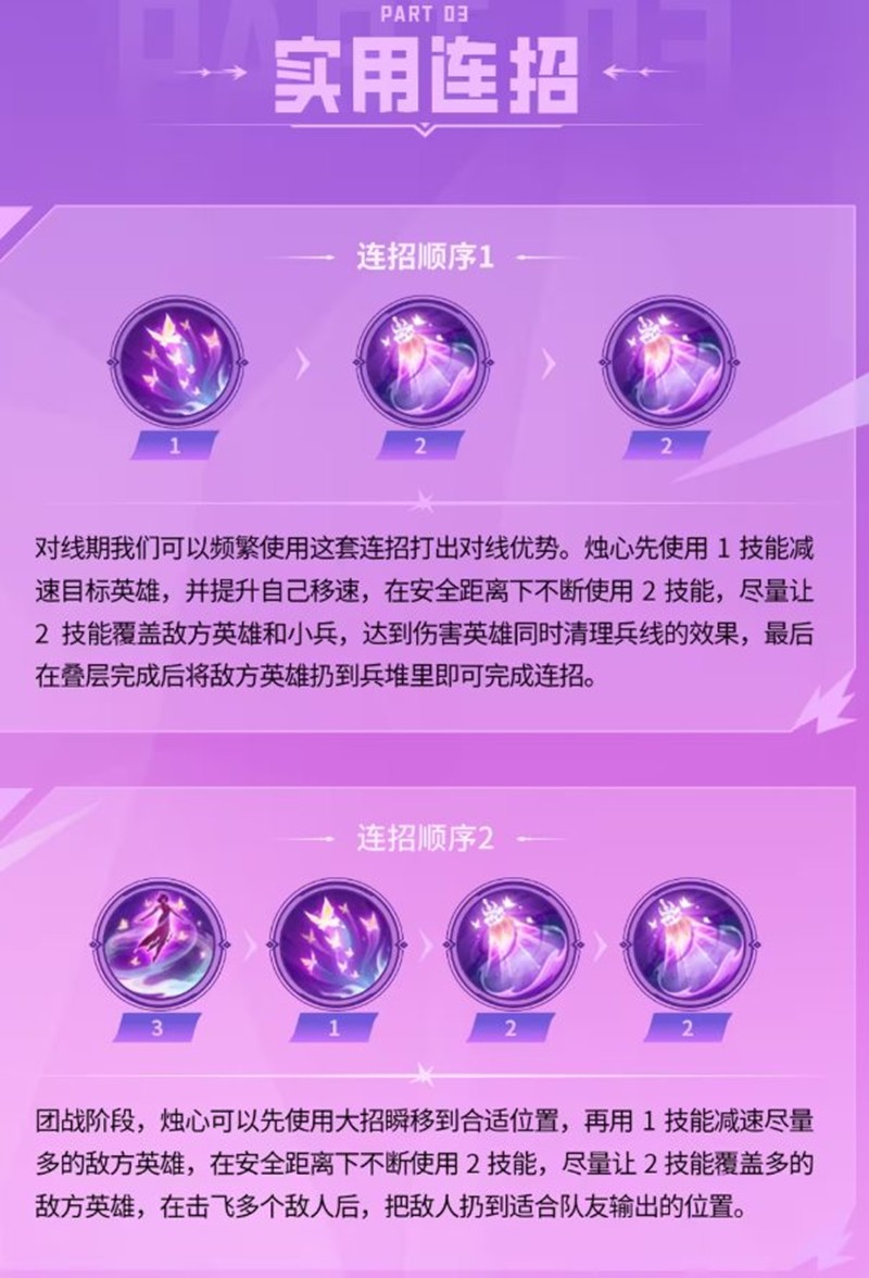 在对线期,推荐使用1/2/2技能的连招。烛心的魔法输出能力较强,通过附加效果层数,能给敌人带来更高的控制和伤害。在装备选择上,可根据战斗环境和对手英雄进行调整,如在控多环境下选择回蓝鞋,在敌方控制技能多时选择减控鞋。
