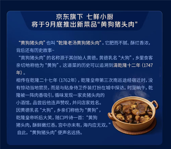 据了解,“黄狗猪头肉”也叫“乾隆老汤黄狗猪头肉”。肥而不腻、酥烂香浓,背后还有历史故事。