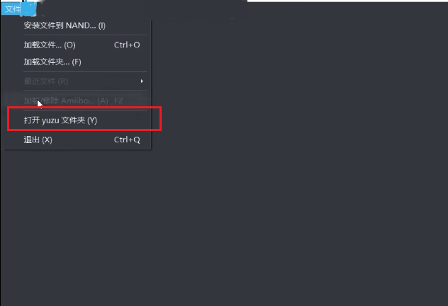 2、软件中点击左上角的文件选项,出现的窗口中点击【打开yuzu文件夹】。