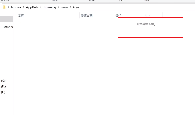 4、打开后可以看到文件夹中是空的,最小化文件夹,将电脑中的key文件复制到keys文件夹中。