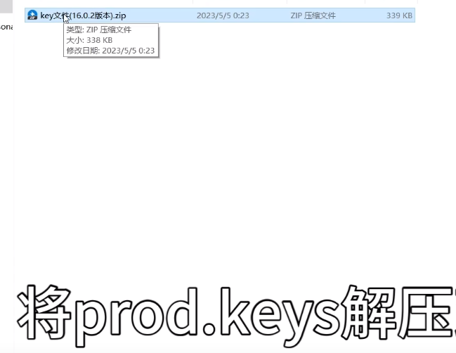 5、将复制的prod.keys解压到keys文件夹中,解压完成后,删除key文件压缩包。