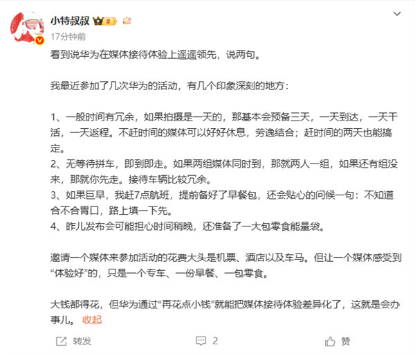 多位博主怒赞华为发布会的接待水平:遥遥领先、T0级别