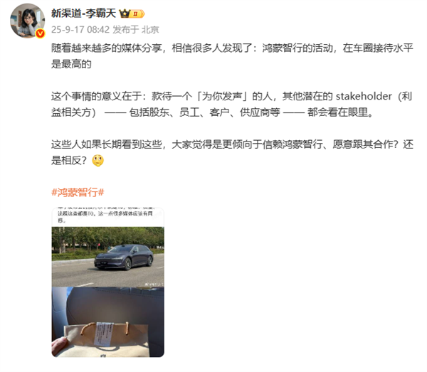 不少博主怒赞华为发布会的接待水平是车圈“遥遥领先”的T0级别水准,诸多细节服务让亲历者印象深刻。
