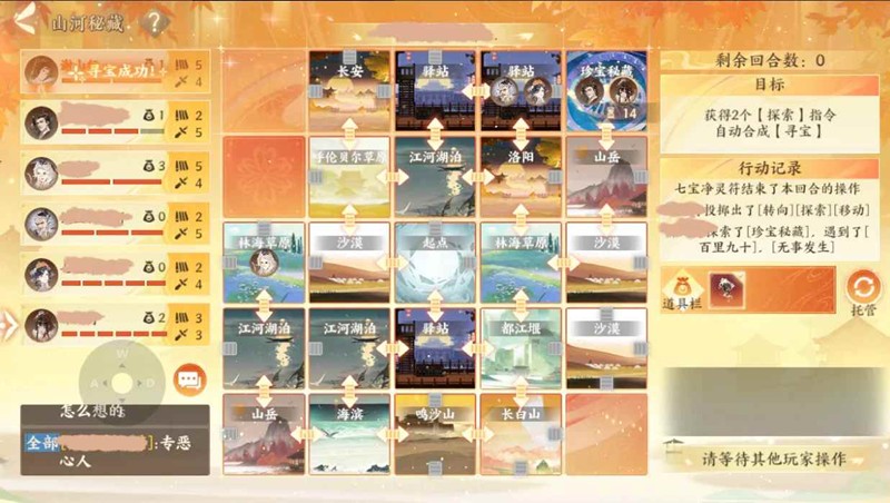 探索:在找到宝藏之前,探索有概率获得道具减少生命或增加生命。找到宝藏后,获得两个探索,可合成寻宝,直接获得胜利