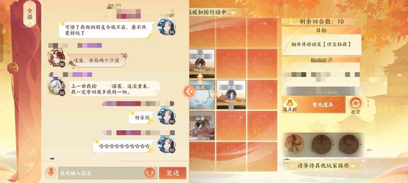 然后进去后每天随机匹配出场顺序,随机给三个按钮,其中包括移动,易位,转向,探索,逐客,推演