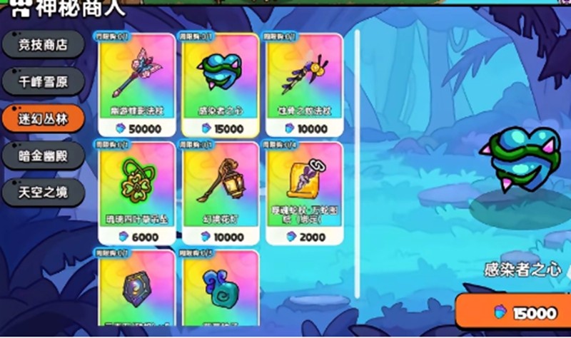 收集完50个果实后,需要立即前往安全区的传送门返回小镇。这里要特别注意,不要在地图内直接提交任务,而是要找神秘商人进行兑换。完成任务的同时还能获得感染者执行或幽游蝶影法杖等高级武器奖励。