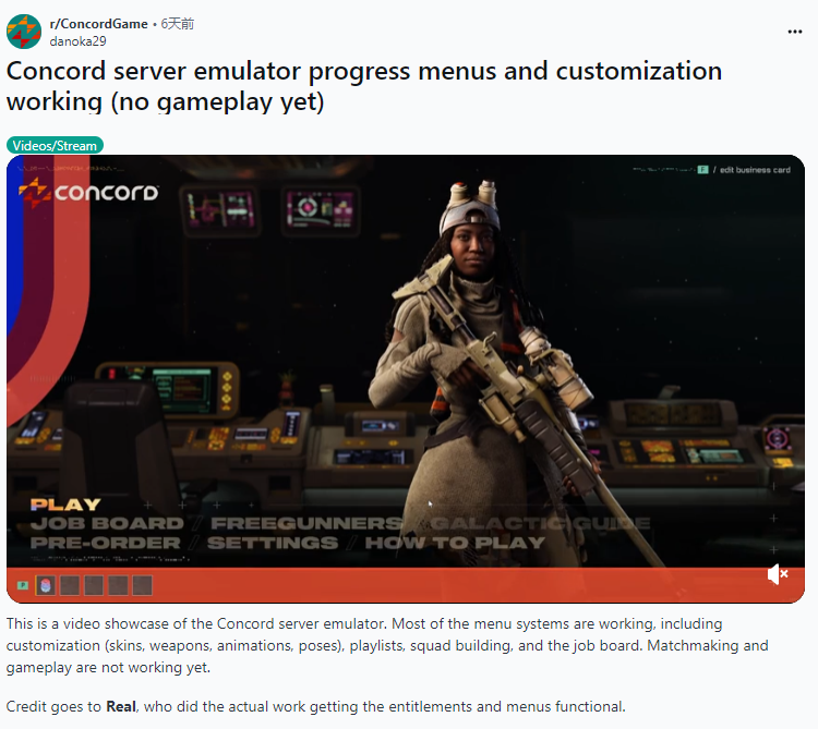 最近有Reddit论坛网友发帖称,有人正在尝试通过服务器模拟器来恢复《星鸣特攻》的游玩,目前已经可以运行菜单、自定义角色、组建小队、查看任务面板等操作,但最核心的匹配与实际游玩仍然无法实现。