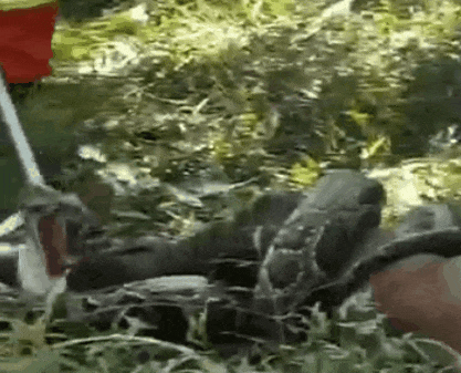 广东一条20斤蟒蛇生吞小牛犊 被抓时张开血盆大口抗议