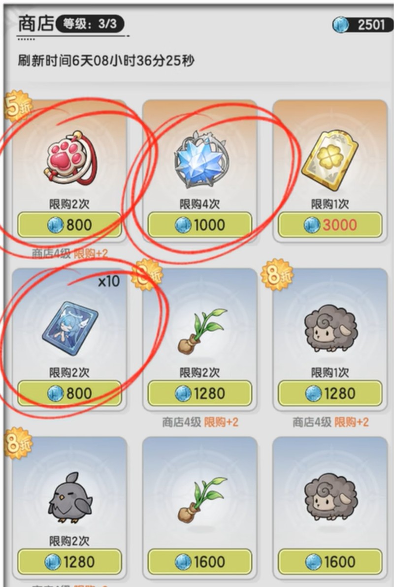 在金币商店消费时,建议每天手动刷新两次商店。金币充足时优先购买资源类商品和女神牌,金币紧张时则只选择折扣商品。宝库中的女神牌、命运果实和委托书属于高价值道具,应该优先考虑购买。其他材料类商品建议在六折以下时购入,确保性价比。
