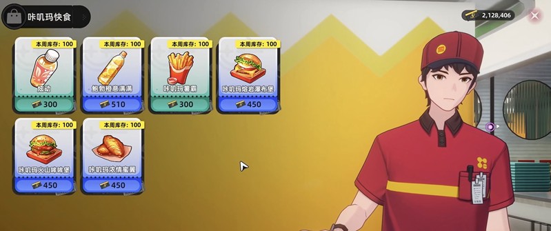 在卡吉玛餐厅里,玩家不仅能购买食物,还能观察到各种有趣的场景。NPC们或是在用餐,或是在交谈,甚至还有情侣约会的画面。最引人注目的要数店员阿明,这个角色以其魔性的造型和夸张的表演成为了餐厅的招牌。玩家与他互动时,会触发一段特别的购买剧情,通过选择界面可以购买各种快餐食品。