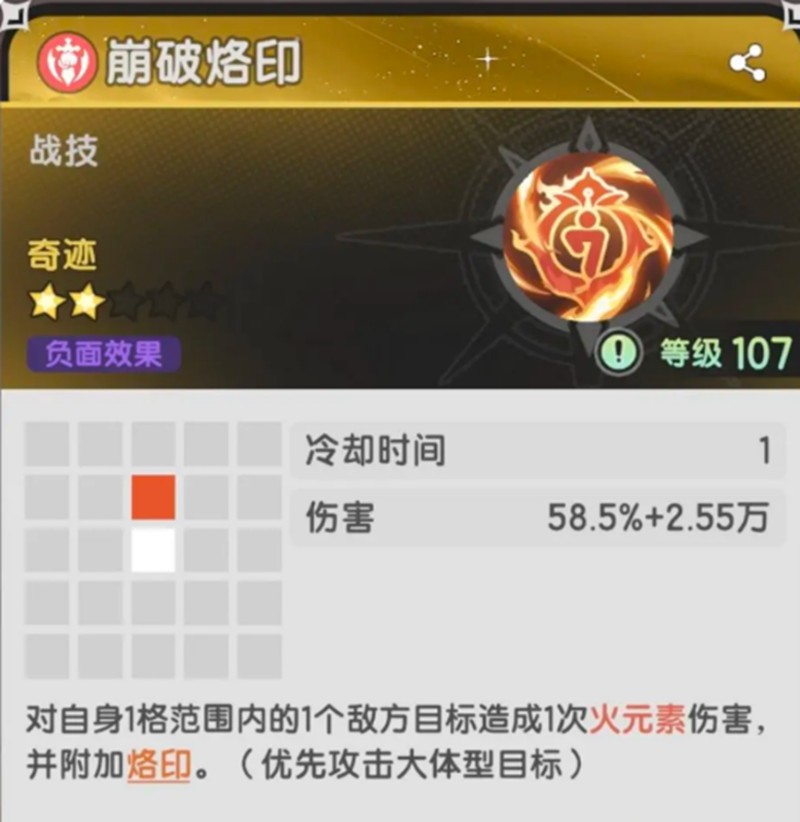 崩破烙印能为目标附加一个增伤标记,使下一次攻击造成额外60%伤害。这个技能在boss战和竞技场中能起到关键的辅助作用,配合其他高伤害技能使用效果更佳。