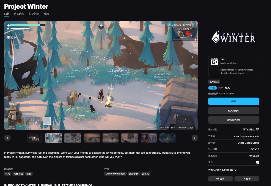 《冬日计划》2019年5月发售,原价31元,支持简体中文: