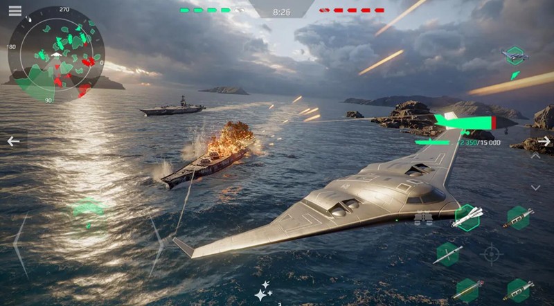 现代战舰的战斗系统相当丰富,除了常规的海面作战外,还加入了直升机侦察与空袭等立体作战元素。游戏中的战舰分为三个等级,随着玩家等级的提升,可以解锁更高级别的舰船。装备系统允许玩家自定义武器搭配,通过更换导弹类型或升级防空炮来打造个性化的战斗风格。
