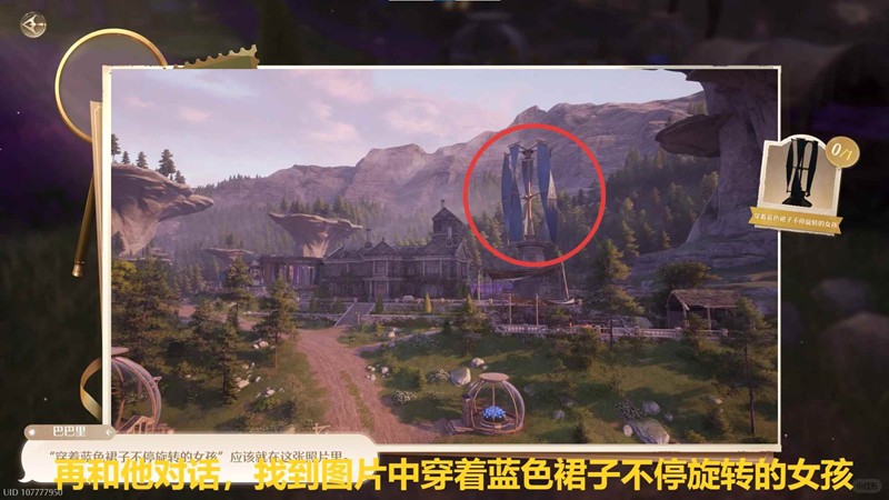 找到巴巴里,和他对话,接取任务,然后再和巴巴里对话,找到图片中穿蓝色裙子不停旋转的女孩;
