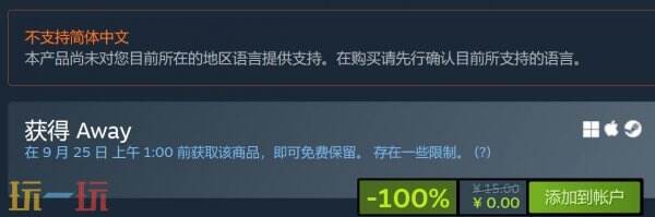 时间:2025-09-20 | 作者: | 阅读:0近日,Steam平台多款游戏可限时免费领取,其中包括黑白风格的短篇游戏《Away》,原价15元,现可直接免费入库。活动送完即止。免费保留促销期间发放的游戏,不会掉落Steam集换式卡牌。