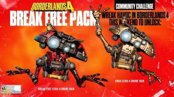 Gearbox同时公布了“挣脱束缚包”及两款ECHO-4无人机皮肤的兑换码:JS63J-JSCWJ-CFTBW-3TJ3J-WJS5R。