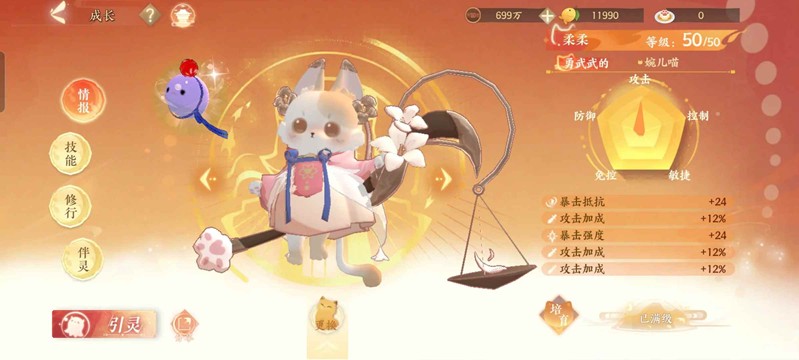 猫猫性格:除了西施猫30几级,其他猫猫都要满级,性格词条大部分是攻击加成,吕雉喵词条暴击伤害,张良敏捷(都四词条最好,我只有吕雉四词条,其他都是洗到差不多性格就放弃了)