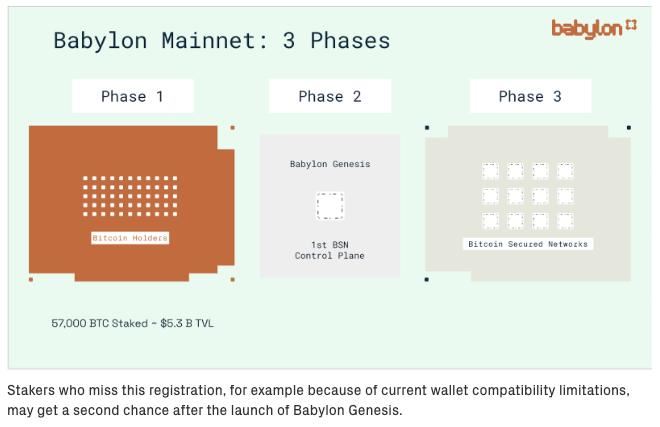 – 2025 年初(Phase-2):Babylon 链和$BABY 代币正式上线,标志着 BTC 质押者与PoS 区块链建立双向市场,开启安全共享机制。
