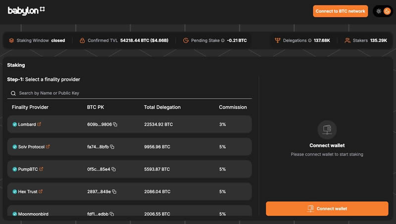 – 钱包集成(Wallet Integrations):OKX Web3 Wallet、Bitget Wallet、UniSat 等主流钱包已内置Babylon 的BTC 质押功能。