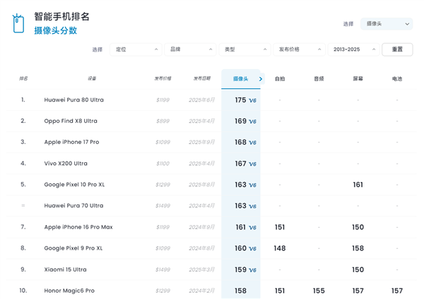 这个成绩仅落后于第二名的OPPO Find X8 Ultra一分,不过距离华为Pura 80 Ultra的175分还有不小差距。