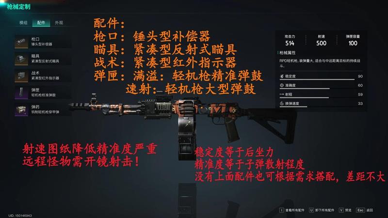 在模组搭配方面,RPD要爆炸啦的异能后缀选择普通即可,培养成本极低。武器选择火焰共鸣异能,头盔搭配异常专家异能,面罩选择重度烧伤异能,衣服可以搭配快速返厂或优势保持异能,裤子选择元素共鸣异能,手套搭配元素或异常强化异能,鞋子则选择稳扎稳打或掩护备战异能。