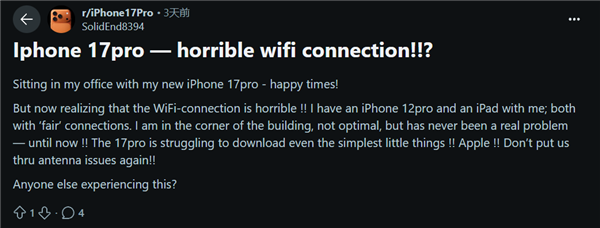 在MacRumors论坛、Reddit以及Apple支持社区中,已有数百条关于此问题的讨论帖出现。