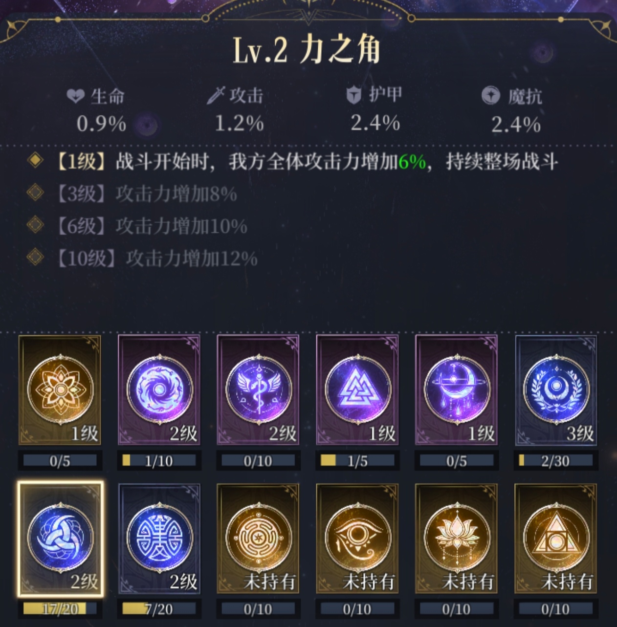8、英灵之结,增加前排肉盾的坦度,防止越级推图前排死太快导致后排放不出技能的情况。