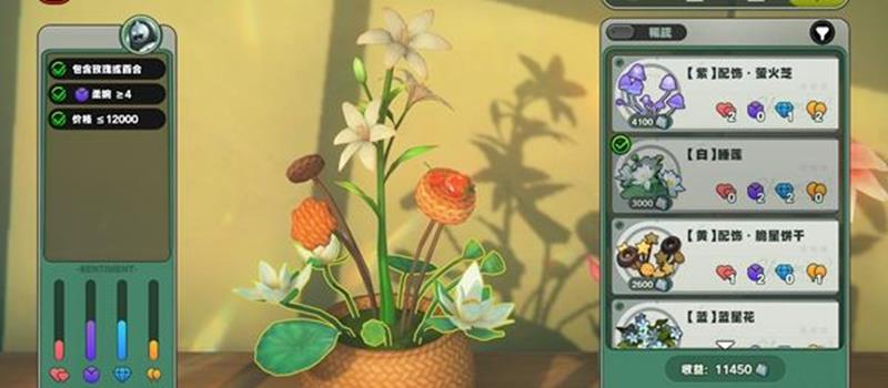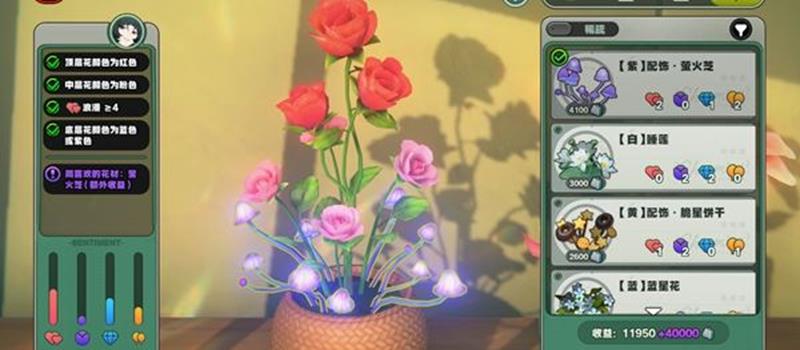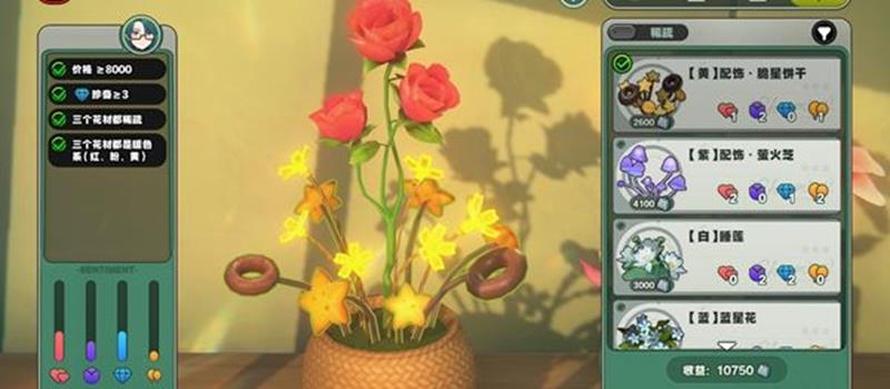 在第二天的任务中,玩家需要根据顾客的要求搭配花束。