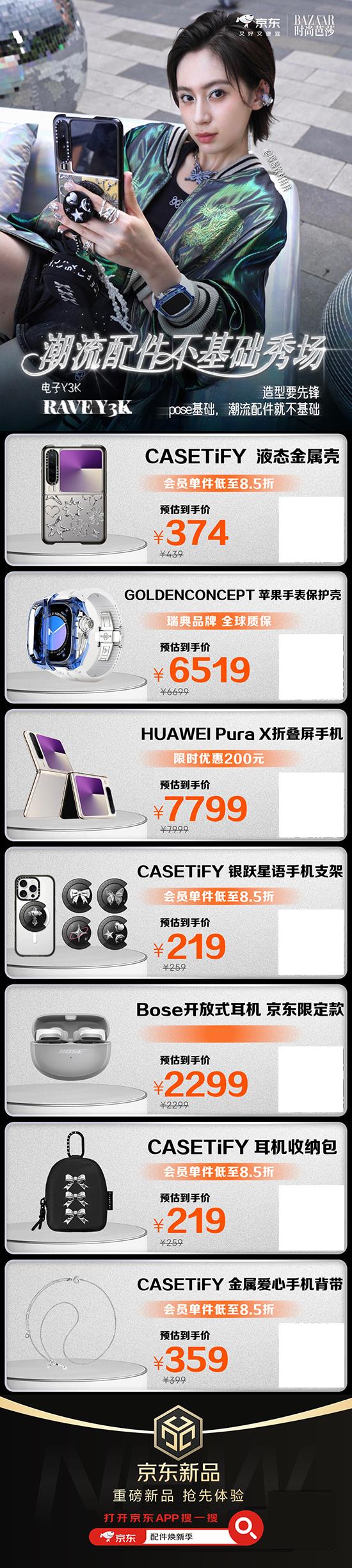 以前卫金属材质和未来感设计语言,打造极具视觉冲击力的科技单品。CASETiFY为华为Pura X定制的液态金属壳,以一体成型结构和镜面金属质感,兼顾强防护性与美学表达,京东活动价374元,PLUS会员券后低至354元;GoldenConcept赛车运动系列透明改装手表壳延续瑞典精工设计,以奢华材质重塑可穿戴设备的时尚语言,适配Apple Watch Ultra2/3,支持12期免息,京东价6519元。