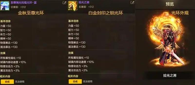 拾光之溯光环礼盒的光环属性与金秋至尊光环一致,外观为“金轮”,搭配天2时装效果十分霸气。像素帽子装扮福袋开启后可获得像素头2.0,外观十分可爱,尤其是搭配兔耳朵魔法师,萌态十足。除此之外,还有大师级品级调整箱、65级华丽一次性强化器、精炼奇迹变换石以及3阶属强白金徽章神秘礼盒等实用道具。
