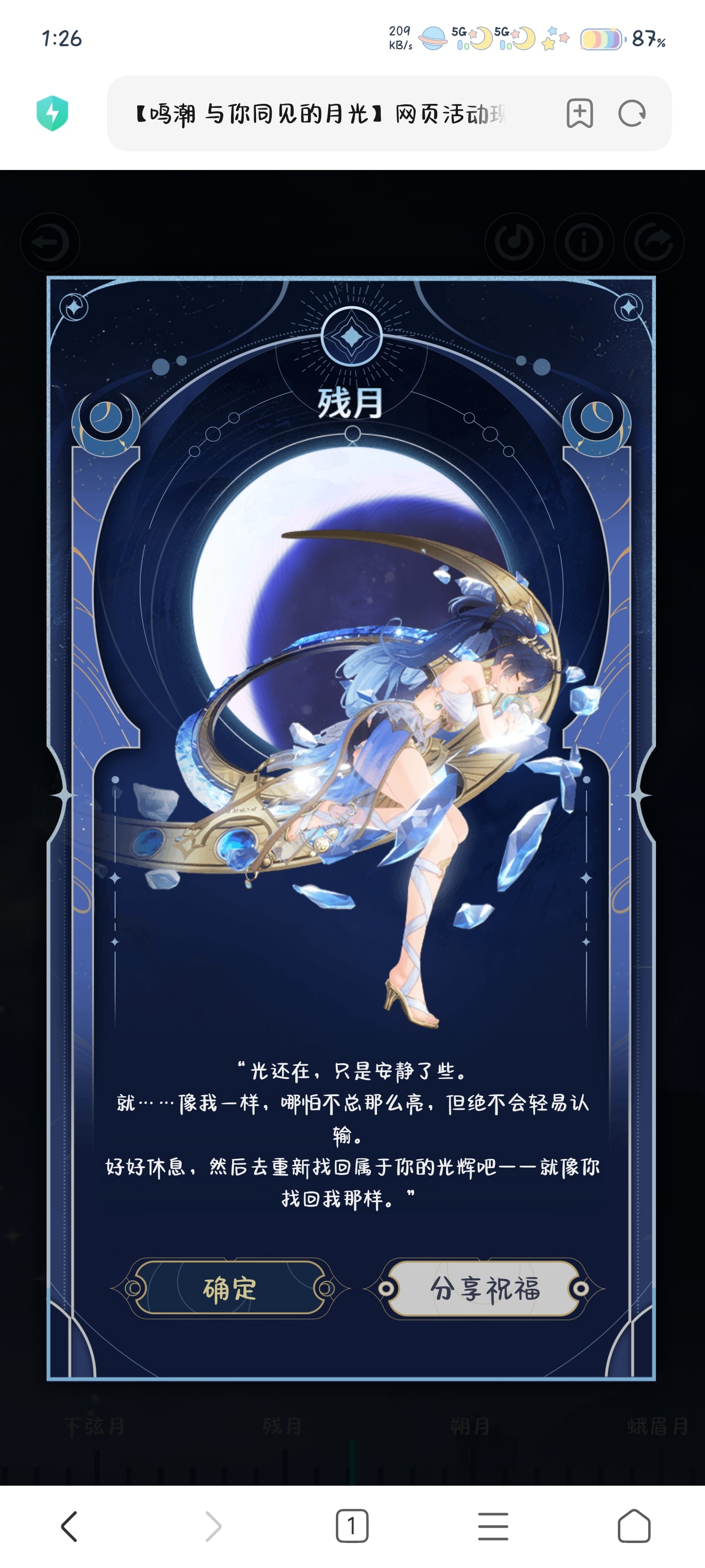 2.本次活动全部玩法仅限网页活动创意,与游戏内实际玩法无关。本次活动中获取的月相祝福和合影动作与游戏内实际效果无关,相关设定和表现以游戏内实装为准。