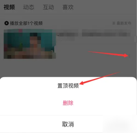 进入视频页面后在视频右边选择三个点然后点击*个顶置视频即可
