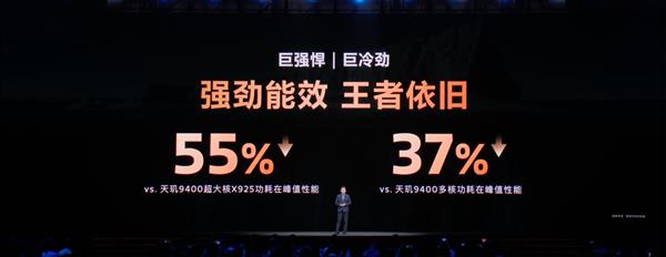 天玑9500不仅性能狂飙,能效更是惊艳。借助全新的高容量缓存架构与动态调度、动态电压技术,在上一代峰值性能下,超大核功耗降低高达55%,多核功耗降低高达37%,堪称“巨强悍,巨冷劲”的完美演绎。