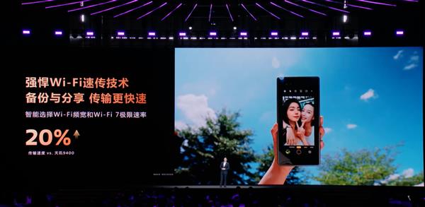 天玑9500的升级是全方位的。天玑蓝牙大耳朵通话技术通过音讯频谱智能补偿,让远距离、穿墙通话也清晰,通话也不断线;Wi-Fi速传技术智能选取Wi-Fi 7网络,传输满速不发烫;AI通信节能技术和AI选网技术,让网络更省电、信号更强;AI定位技术则让城市打车导航又快又准。
