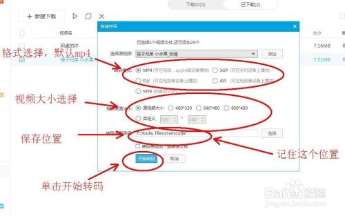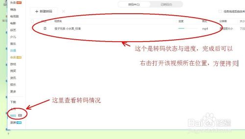 单击转码按钮,对下载好的视频进行转码,或者选定下载好的视频单击右键,找到转码,直接转码,见图