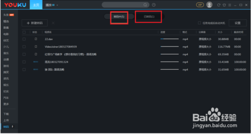 设置转码格式后,点击开始转码——点击转码中就可以查看视频转码的进度——点击已转码就可以查看已经完成转码视频的情况。等待转码完成就可以退出了。
