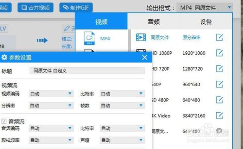 第三步.选定好视频文件后,右上角的输出格式可以选择需要转换的视频格式,然后还需进行输出设置,也就是设置视频的分辨率等参数,分辨率越高就越清晰。