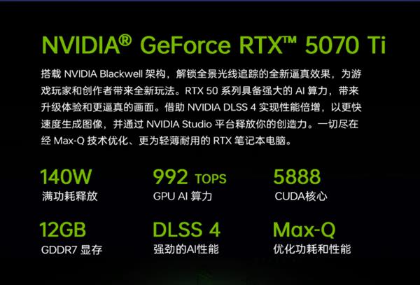 它搭载AI智能散热调节系统,依托英特尔创新的内吹专利技术,配合双风扇、7热管、大面积均热板,构建高效热传导网络。通过内置的AI算法,能实时监测处理器和显卡的温度、负载情况等参数。当游戏进入高负载场景,处理器和显卡温度升高时,AI系统会自动调节风扇转速和散热鳍片的散热效率。