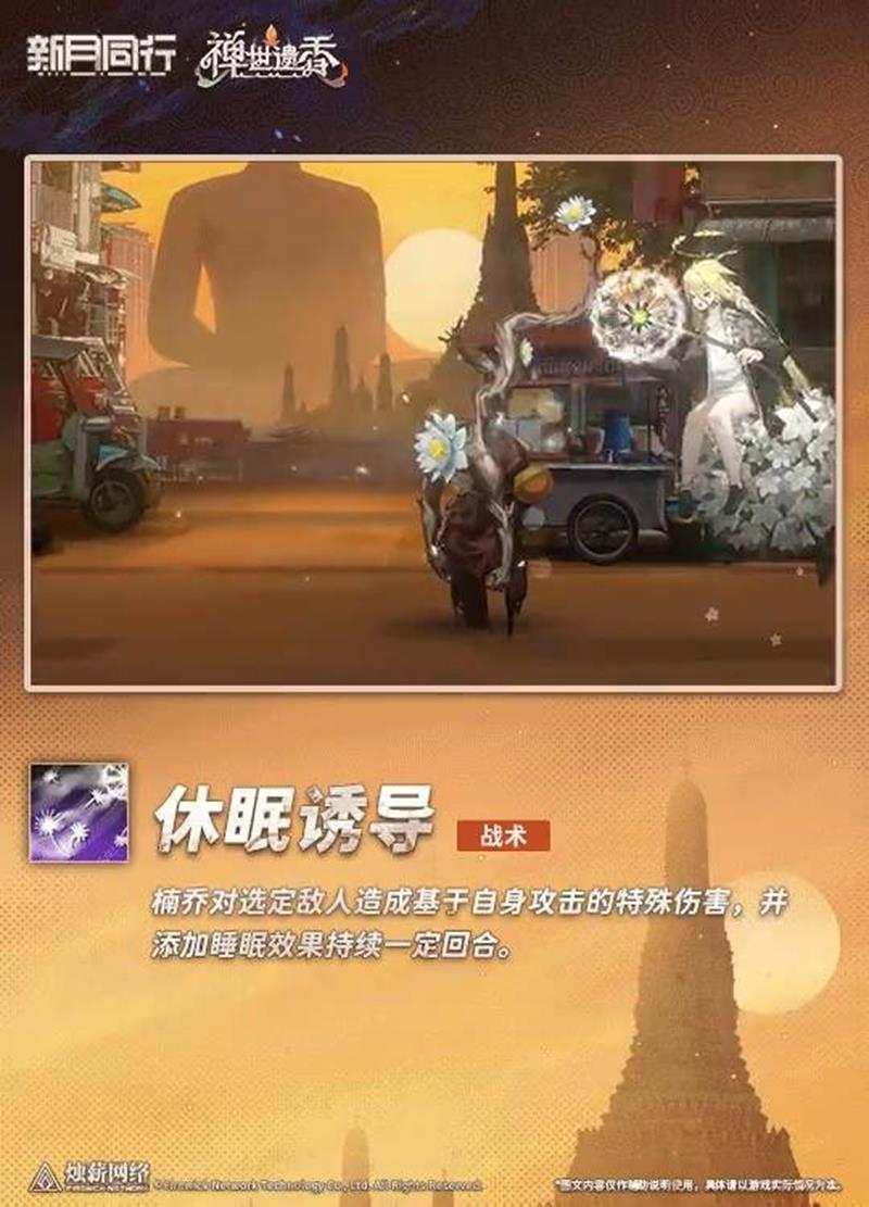 【休眠诱导】 战术 楠乔对选定敌人造成基于自身攻击的特殊伤害,并添加睡眠效果持续一定回合。