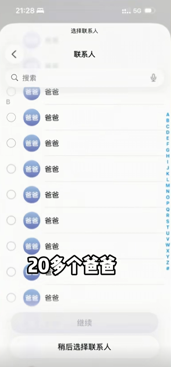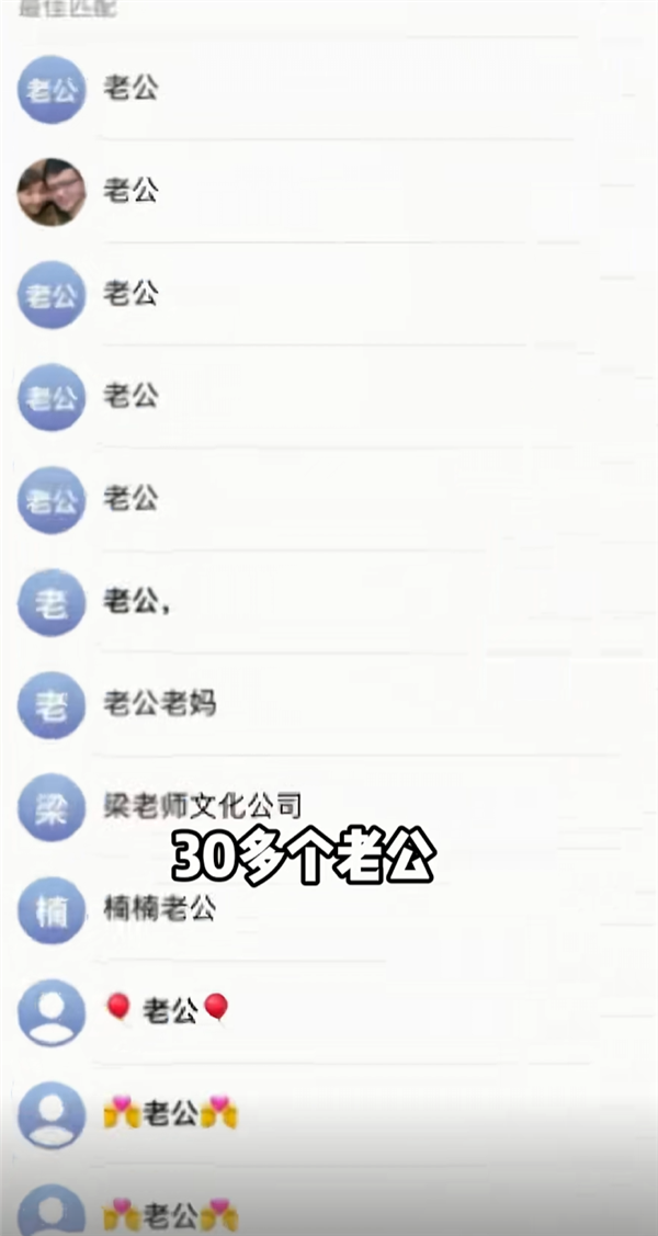 据该女子介绍,这些联系人中有20多个备注是“爸爸”的,还有30多个备注是“老公”。
