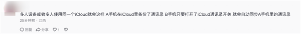 对于该女子的经历,有网友表示:“多人设备或者多人使用同一个iCloud就会这样,A手机在iCloud里备份了通讯录,B手机只要打开了iCloud通讯录开关,就会自动同步A手机里的通讯录。”