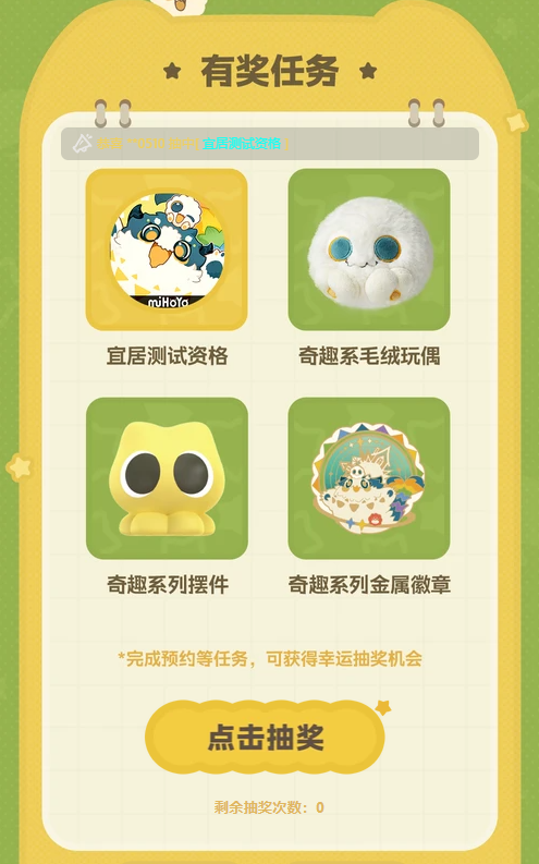 4.抽奖获得【宜居测试】资格的用户,需要点击【我的奖品】,填写测试资格信息搜集问卷;需要在11月9日23:59前,按要求填写。如未按时、正确填写完成,即视为放弃测试资格。