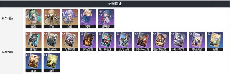 五星光锥【惊魂夜】【棺的回响】【时节不居】、四星光锥【何物为真】【嘿,我在这儿】【暖夜不会漫长】【同一种心情】【一场术后对话】【等价交换】【此时恰好】、三星光锥【嘉果】【物穰】【蕃息】的等级突破需要消耗生命之芽。